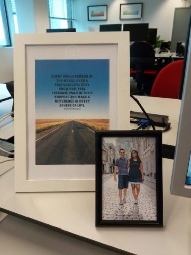 Op mijn bureau staat een lijst met daarin mijn uitgeschreven visie. Iedere keer wanneer ik op mijn werk kom word ik herinnerd aan de ‘waarom’ van mijn leven. Dat zorgt ervoor dat je weer weet waar je het allemaal voor doet. Daarnaast staat er op mijn bureau een foto van mijn vrouw. Daar word ik ook ontzettend gelukkig van.